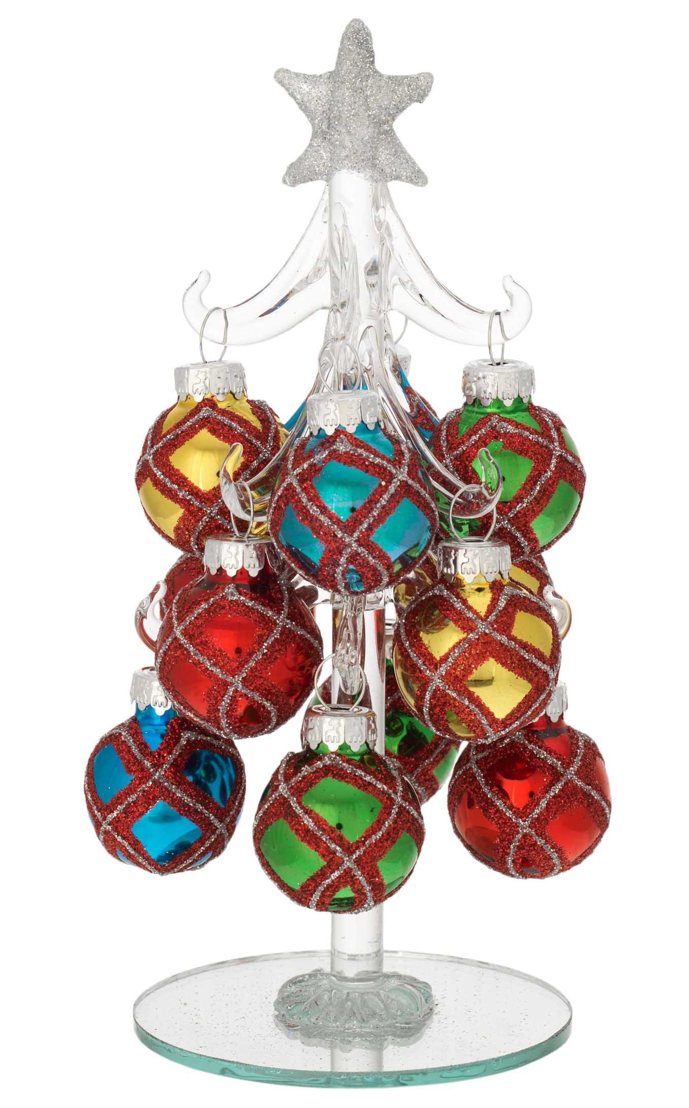 Albero di Natale con palline h. 17 cm in vetro soffiato con confezione regalo.