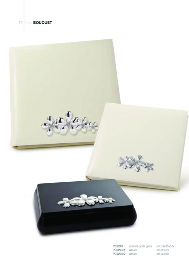 Photo Album of the line’s Bouquet “Pierre Cardin” with daisies in silver color white / cream measure 23×23 cm.